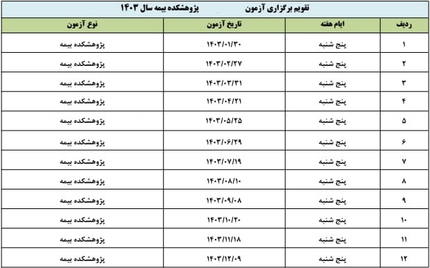 تقویم برگزاری آزمون های بیمه عمر(زندگی) در سال 1403