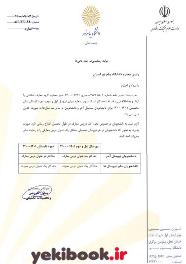 اخذ سه عنوان درسی معارف پیام نور برای دانشجویان ترم آخر